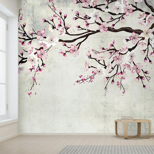 wall26 - Large Wall Mural - Watercolor Style Ink Painting Pink Cherry Blossom on Vintage Wall Background | Self-Adhesive Vinyl Wallpaper/Removable Modern Wall Decor - 100x144 inches