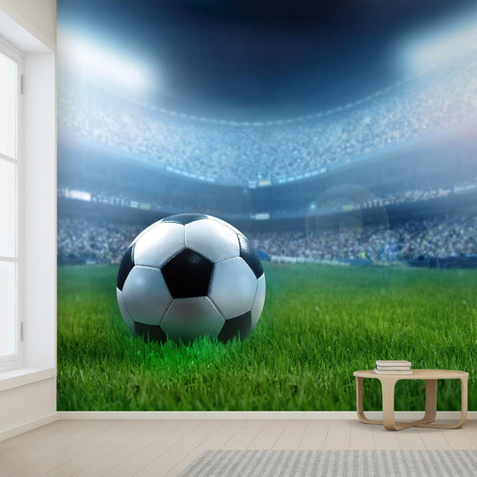 wall26 Wall Sticker/Wall Mural Close Up of a Football Ball on a Full Stadium, Not Peel and Stick, Non-Woven Wallpaper Decorative for Bedroom, Living Room, Office - 120x168 inches