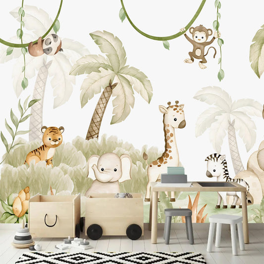 AFZEVEB-Safari Wallpaper Watercolor Animal Nursery Wall murals for Kids Room 114"x74"(Not Peel and Stick)
