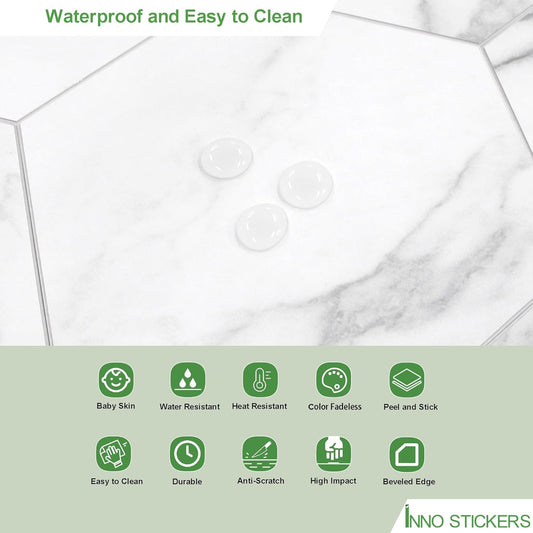 45-Sheet Hexagon Peel and Stick Backsplash, 6" x 7" White Calacatta Marble Looks Self Adhesive Wall Tile, Stone Composite Stick on Decorative Mosaic Tile for Kitchen Bathroom Fireplace
