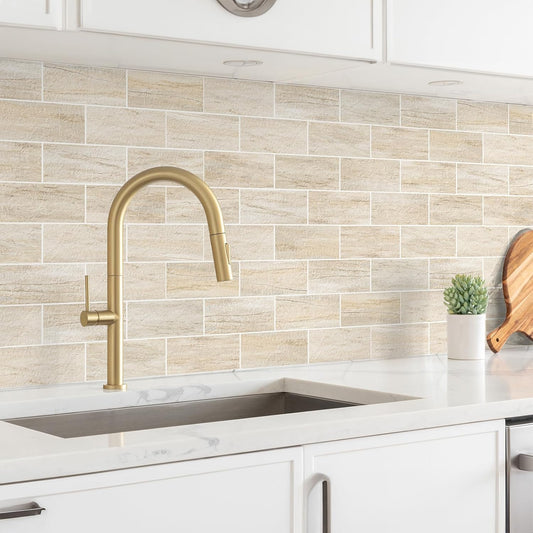 100 Pieces Peel and Stick Backsplash for Kitchen, 3" x 6" PVC Subway Tile Upgraded Calacatta Gold with Dark Gray Grout Backsplash Stick on Tile Elevate Kitchen, Bathroom, Fireplace,RV