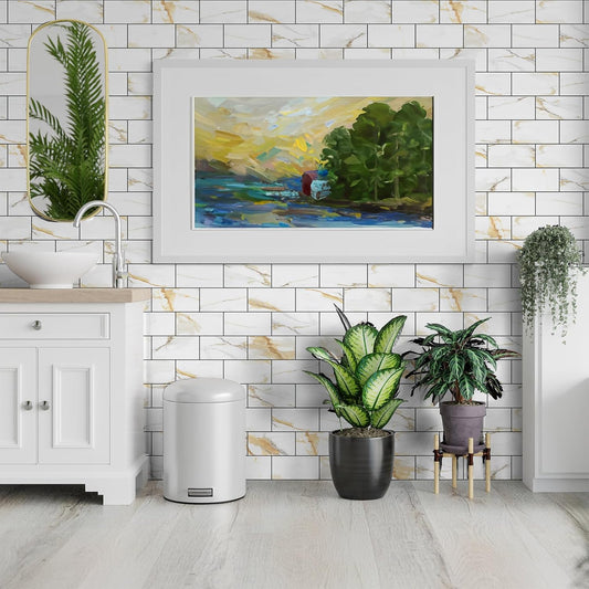 100 Pieces Peel and Stick Backsplash for Kitchen, 3" x 6" PVC Subway Tile 2025 Upgraded Glossy White Marble with White Grout Backsplash Stick on Tile Elevate Kitchen Fireplace RV