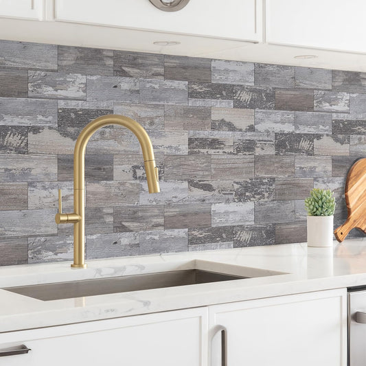4 Pieces Peel and Stick Backsplash for Kitchen, 3" x 6" PVC Subway Tile Upgraded Distressed Wood Backsplash Stick on Tile Elevate Kitchen, Bathroom, Fireplace,RV