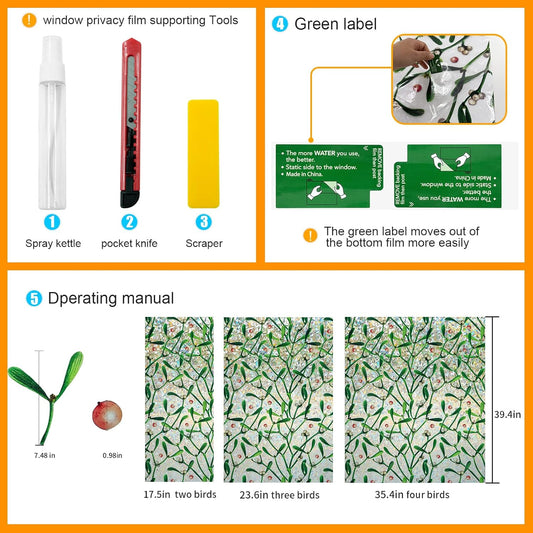 Window Privacy Film Stain Glass Window Film Rainbow Window Film Window clings Non-Adhesive Reusable Decorative for Room (Frosted Greenery Leaf, 35.4 x 78.7 in)