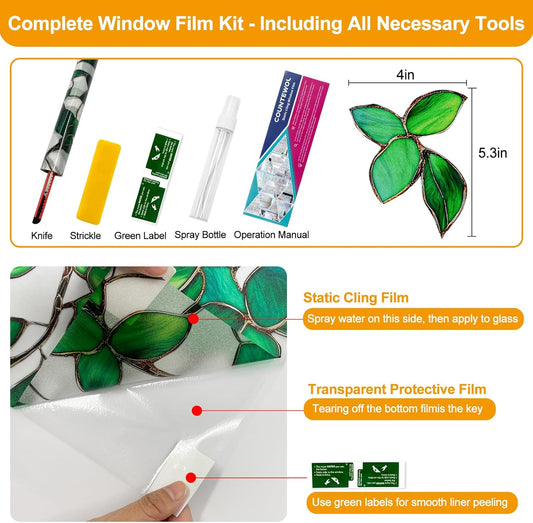 Window Privacy Film Stain Glass Window Film Rainbow Window Film Window clings Non-Adhesive Reusable Decorative for Room (Greenery Leaf, 23.6 x 78.7 in)