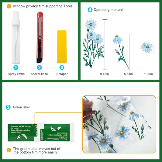 Window Privacy Film Stain Glass Window Film Rainbow Window Film Window clings Non-Adhesive Reusable Decorative for Room (Greenery Leaf, 35.4 x 157.4 in)