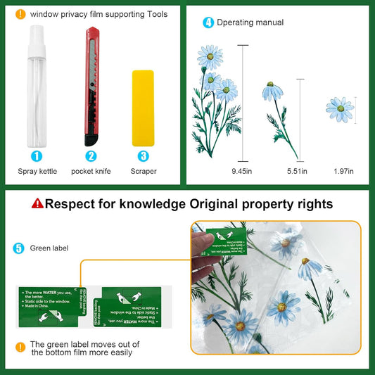 Window Privacy Film Stain Glass Window Film Rainbow Window Film Window clings Non-Adhesive Reusable Decorative for Room (Daisy Rainbow, 45.2 x 78.7 in)