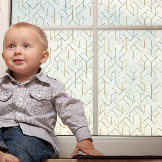 DKTIE Geometric Art Stained Glass Window Film Bathroom Window Privacy Film Frosted Glass Static Clings Non Adhesive with Installation Tools, Modern Home Improvement Style (S117, 35.4'' x 78.7'')