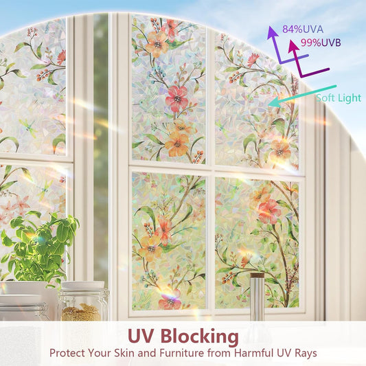NINETREX Window Privacy Film,Stained Glass Window Film,Rainbow Decorative Stickers Static Cling Anti UV Heat Control for Home Decor (Galsang Flower,23.6 x 78.7inch)