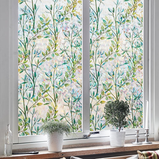 NINETREX Window Privacy Film Stained Glass Window Film 3D Decorative Cling,Sun Blocking Static Cling Removable Film for Glass Door,Home Decor Window Cover Non-Adhesive 11.8 x 78.7 inches,Leaf