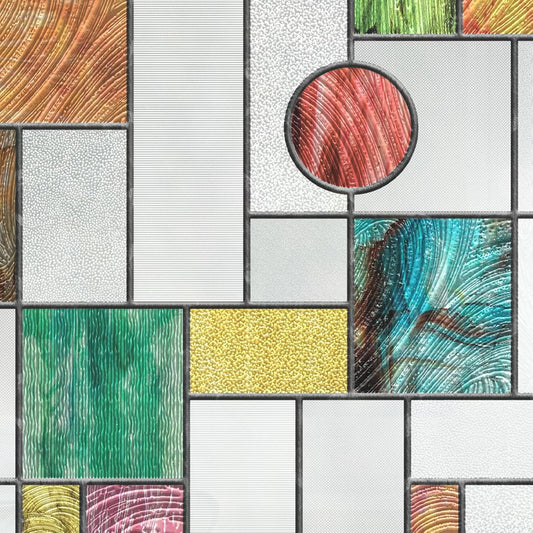 NINETREX Window Privacy Film,Stained Glass Window Film,Rainbow Decorative Stickers Static Cling Anti UV Heat Control for Home Decor (Galsang Flower,35.4 x 157.4inch)