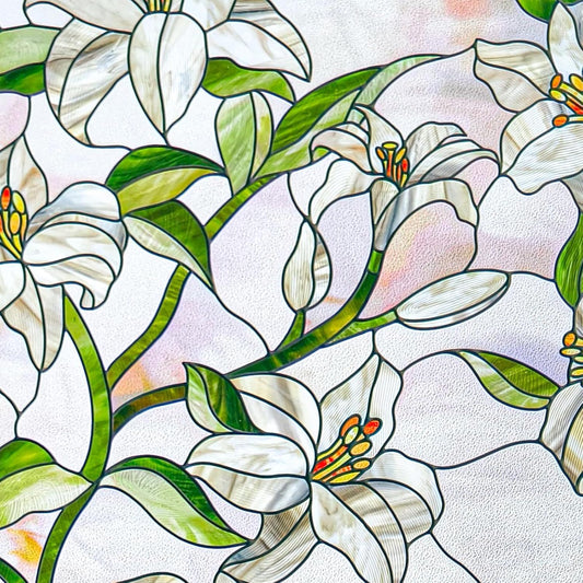 3D Stained Glass Window Film, Decorative Window Privacy Film for Bathroom, Front Door, Home, Sun Blocking Heat Control, Static Cling,White Lily 17.3inch x 47.2inch