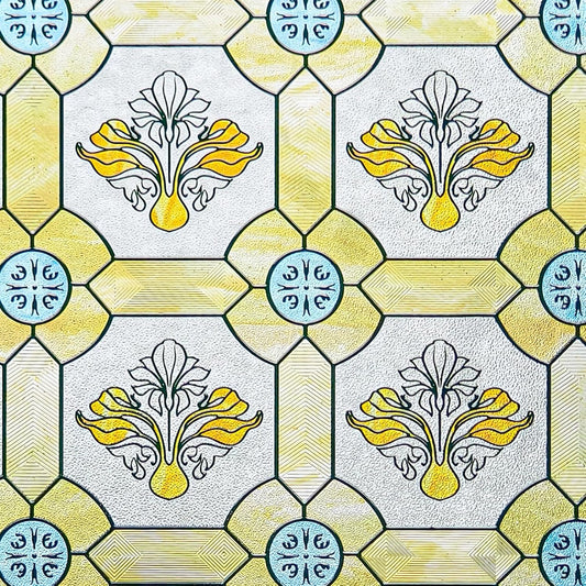 NINETREX Window Privacy Film,Stained Glass Window Film,Rainbow Decorative Stickers Static Cling Anti UV Heat Control for Home Decor (Galsang Flower,23.6 x 157.4inch)