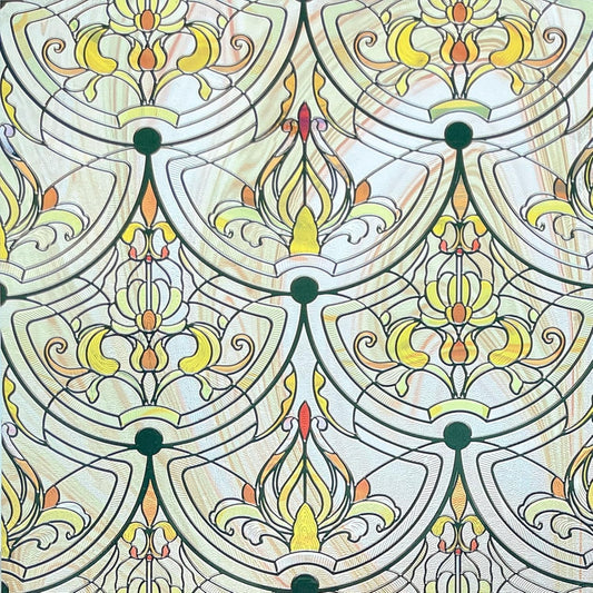 3D Stained Glass Window Film, Decorative Window Privacy Film for Bathroom,Front Door,Home, Sun Blocking Heat Control,Static Cling, Golden Ironwork 17.5inch x 47.24inch