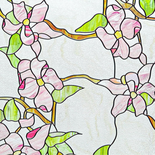 3D Stained Glass Window Film, Decorative Window Privacy Film for Bathroom,Front Door,Home, Sun Blocking Heat Control,Static Cling,23.6inch x 35.4inch Pink sprigs