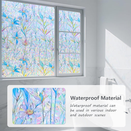 Finnez Window Privacy Film Window Film 3D No Glue Glass Sticker for Glass Door Home and Office Heat Control Anti UV (23.6 Inch x 13.1 Feet, Rainbow Grove)