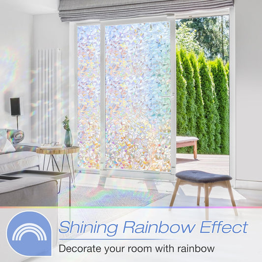 Homein Window Privacy Film, Rainbow Window Film Decorative 3D Window Clings Non Adhesive Window Tint for Home, Stained Glass Window Film for Glass, UV Blocking, 17.5 x 78.7 inches