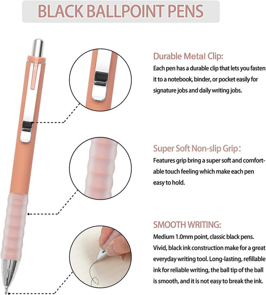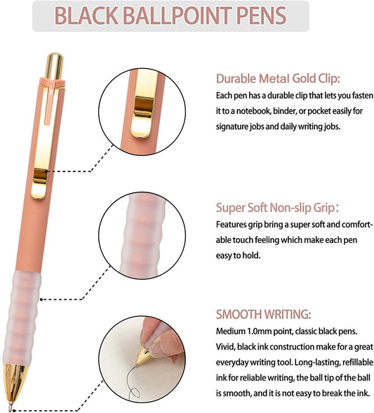 Linbsunne Ballpoint Pens Black Medium Point 1mm Pen with Super Soft Grip Ball Point Pen for Men Women Retractable Pens (gold-12 pcs)