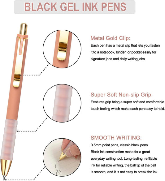 Gel Pens 0.5mm Point Pen Black Ink Smooth Writing Retractable Pen for Office,School Supplies,12-Count (Gold clip)