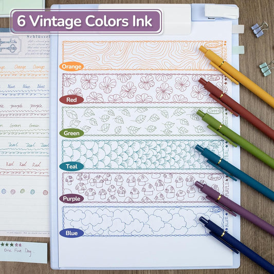 Ddaowanx Colorful Gel Pens, 0.5mm Fine Point Retractable,Multi Colored Pens for Journaling and Sketching,School Supplies,Stuffers for Teens, Gifts for Women (6Pcs-Vintage Colors)