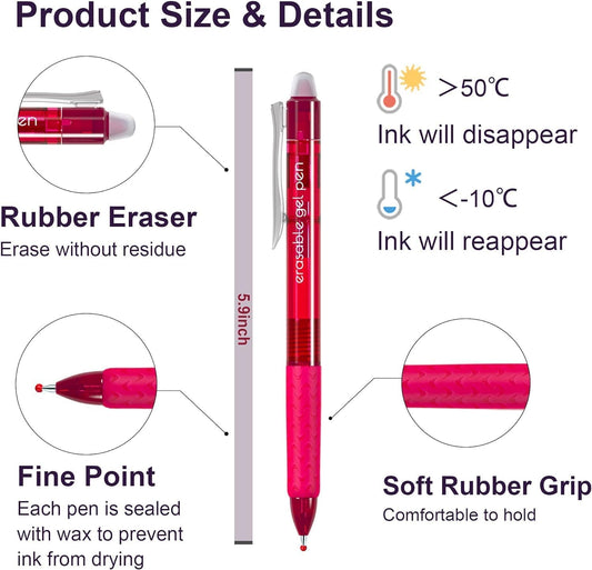 Erasable Gel Pens, 26 Colors Retractable Erasable Pens Clicker, Fine Point, Make Mistakes Disappear, Assorted Color Inks for Drawing Writing Planner and Crossword Puzzles