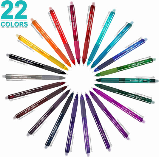 Erasable Gel Pens, 22 Colors Lineon Retractable Erasable Pens Clicker, Fine Point, Make Mistakes Disappear, Assorted Color Inks for Drawing Writing Planner and Crossword Puzzles