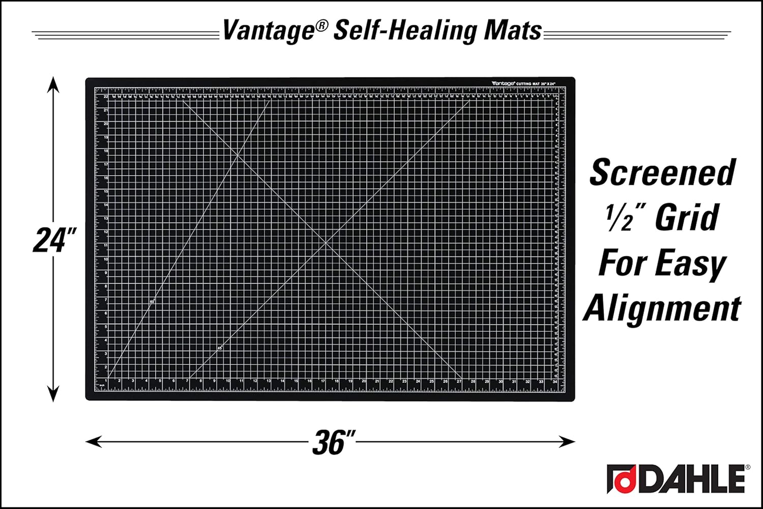 Dahle Vantage 10673 Premium Self-Healing Cutting Mat, 24"x36", 1/2" Grid, 5 Layers for Max Healing, Perfect for Crafts & Sewing, Black