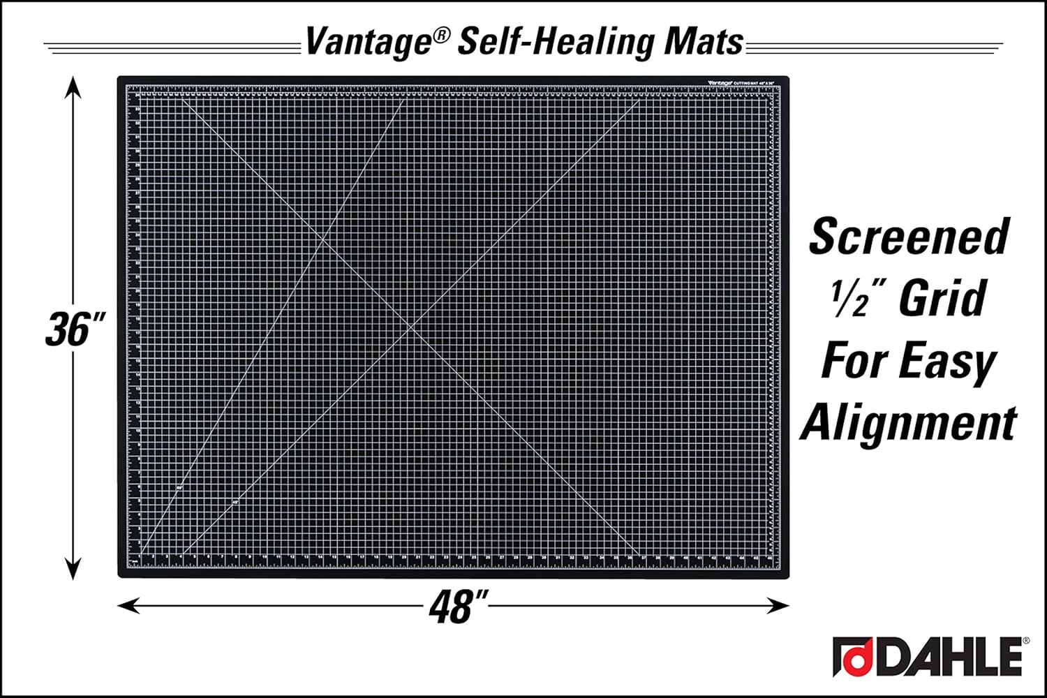 Dahle Vantage 10674 Premium Self-Healing Cutting Mat, 36"x48", 1/2" Grid, 5 Layers for Max Healing, Perfect for Crafts & Sewing, Black
