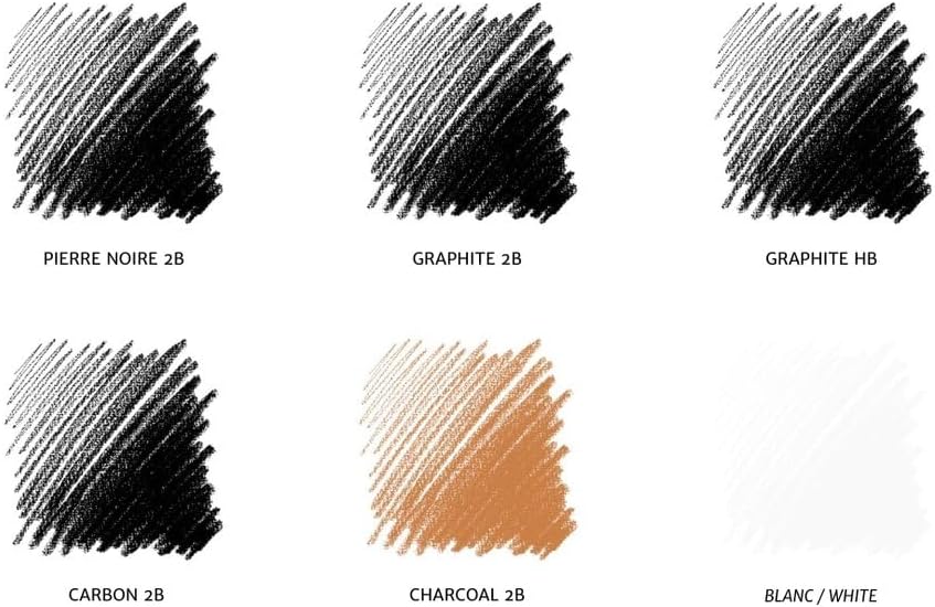 - The essentials of Drawing! This set is composed of 1 Black Stone Pencil 2B, 2 Graphite Pencils 2B and HB, 1 Carbon 2B, 1 Charcoal 2B and 1 White.