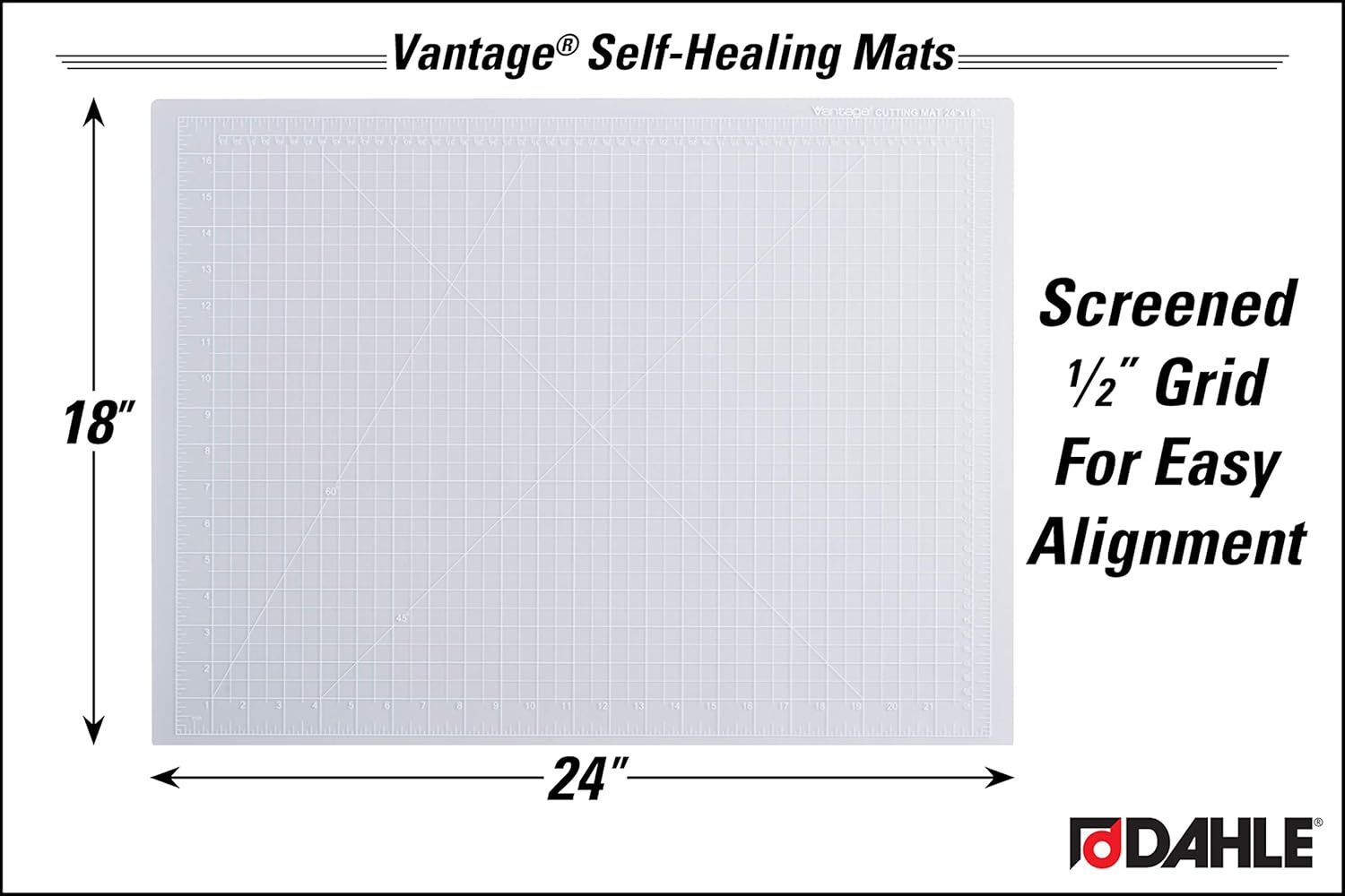 Dahle Vantage 10682 See-Through Premium Self-Healing Cutting Mat, 18"x24", 1/2" Grid, 5 Layers for Max Healing, Perfect for Crafts & Sewing, Clear