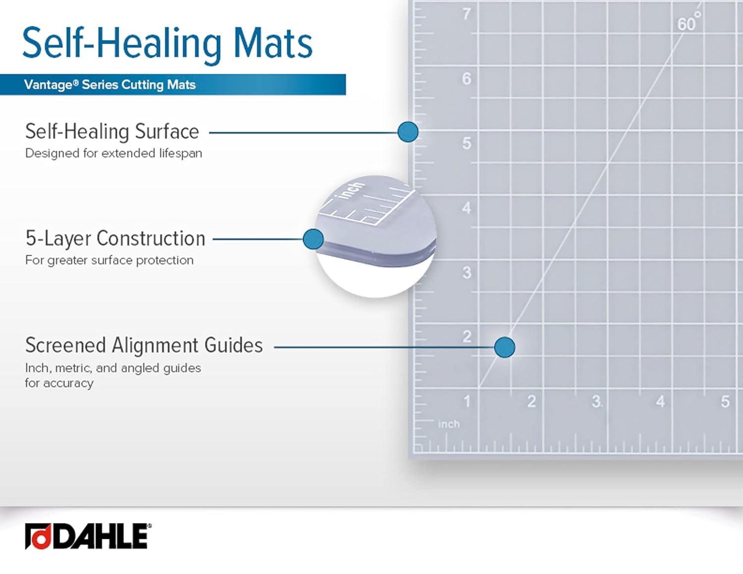 Dahle Vantage 10680 See-Through Premium Self-Healing Cutting Mat, 9"x12", 1/2" Grid, 5 Layers for Max Healing, Perfect for Crafts & Sewing, Clear