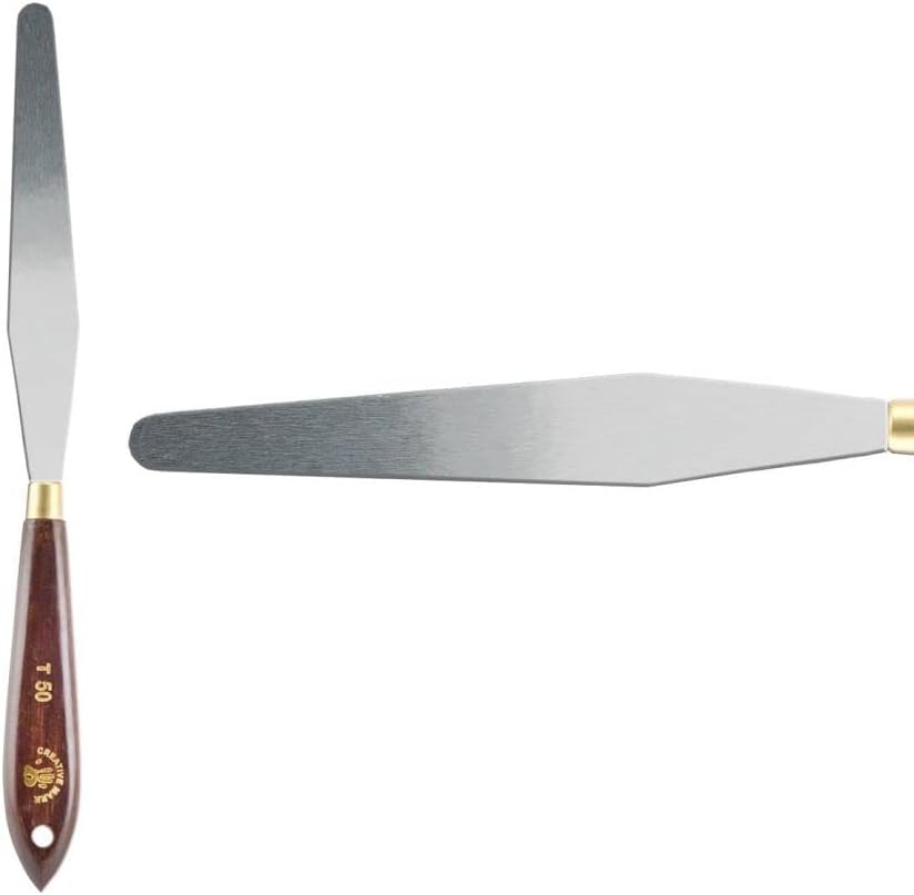 Creative Mark Stainless Steel Palette Knife Painting Tools - Paint Palette with Wooden Handle - Variety of Shapes and Sizes - 50T, 5-1/4 in