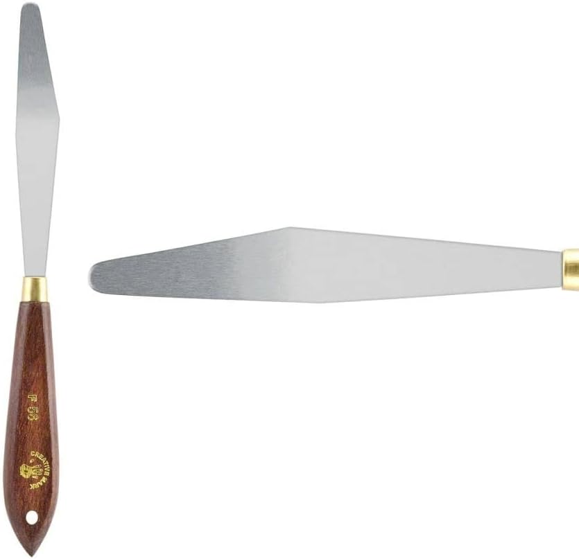 - Paint Palette: This palette knife Features polished stainless-steel blades that are speciAlly tempered to provide the perfect Painting response. The blades are carefully fixed into Wooden handles using brass collars, ensuring stability and durability.
