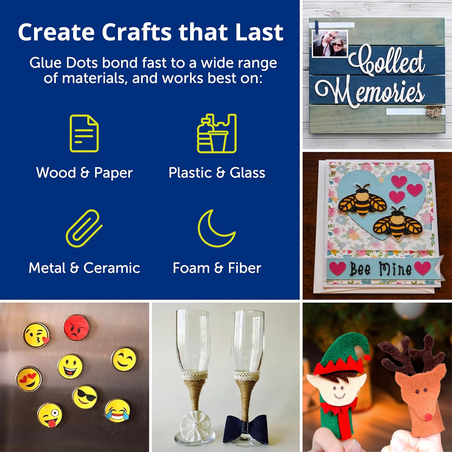 - REMOVABLE ADHESIVE WITH NO MESS: Our clear Glue Dots require no solvent, water, or heat to activate and can easily be removed or repositioned without leaving behind stains or sticky residue