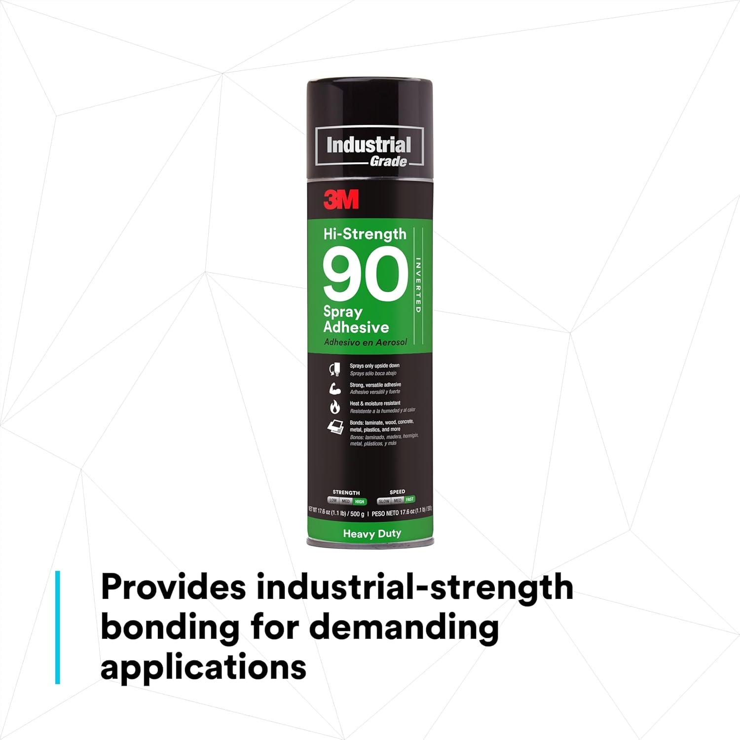 3M Hi-Strength 90 Spray Adhesive, Permanent, Bonds Laminate, Wood, Concrete, Metal, Plastic, Clear Glue, Net Wt 17.6 oz, Will Spray Upside Down Only