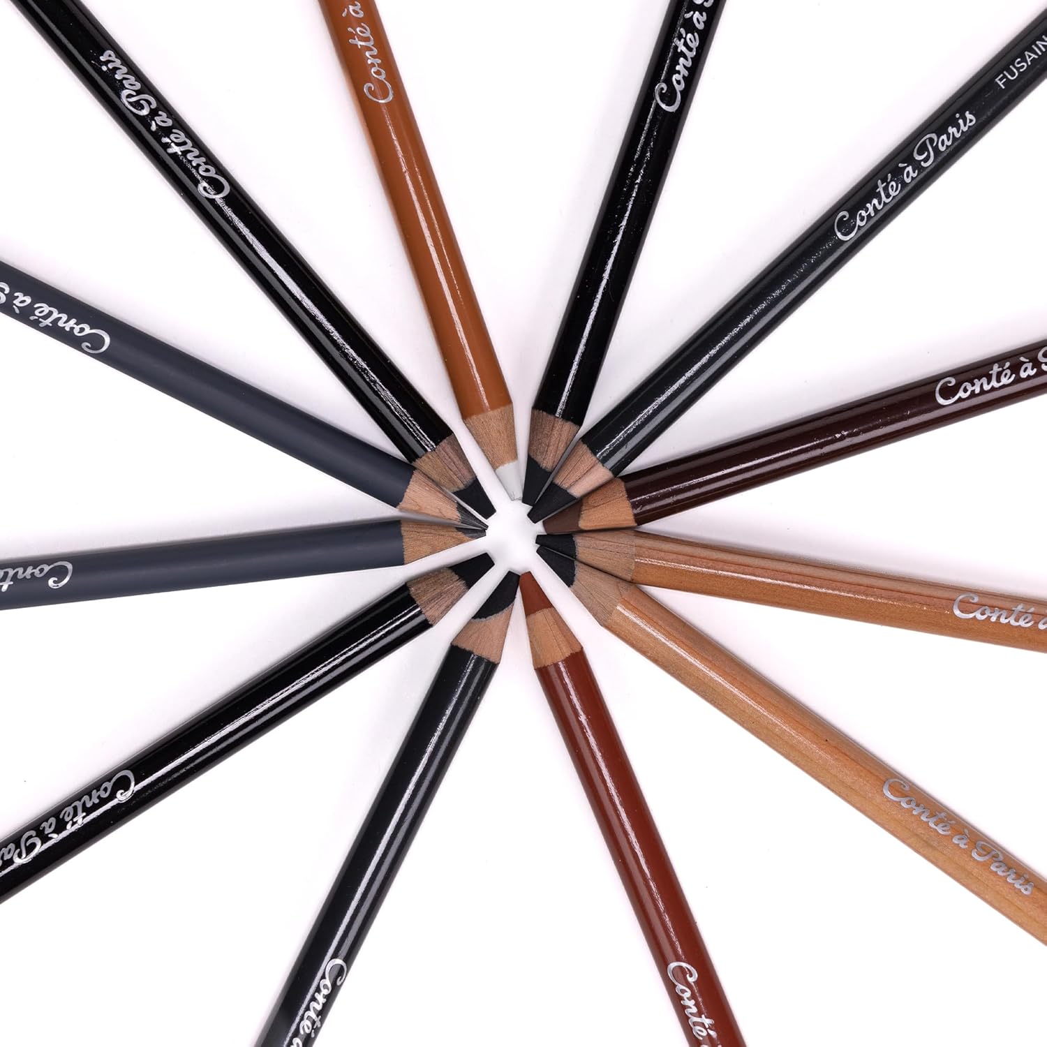 - Contains: 1 Black Stone Pencil H, 1 Black Stone Pencil B, 1 Black Stone Pencil 3B, 1 Charcoal Pencil HB, 1 Charcoal Pencil 2B, 1 Sepia Pencil, 1 Sanguine Pencil, 1 White Sketch Pencil, 1 Carbon Pencil 2 B, 1 Carbon Pencil HB, 1 Graphite Pencil HB, 1 Graphite Pencil 2 B.