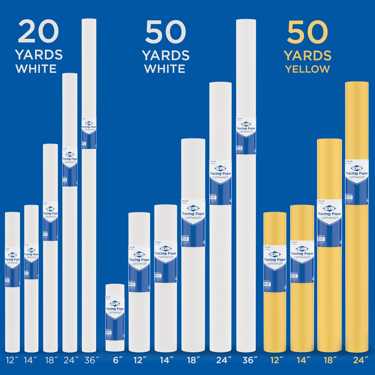 ALVIN 55W-J Lightweight Tracing Paper Roll, White, Suitable with Ink, Charcoal, Felt Tip Pen, for Sketching or Detailing - 24 Inches, 50 Yards, 1-inch Core