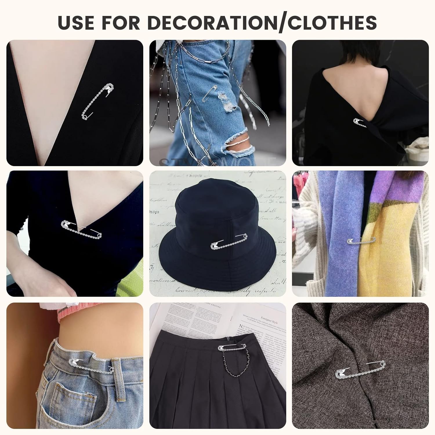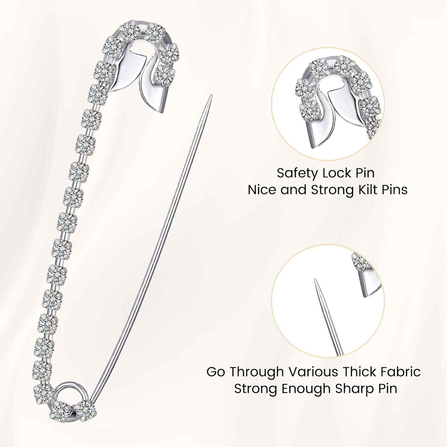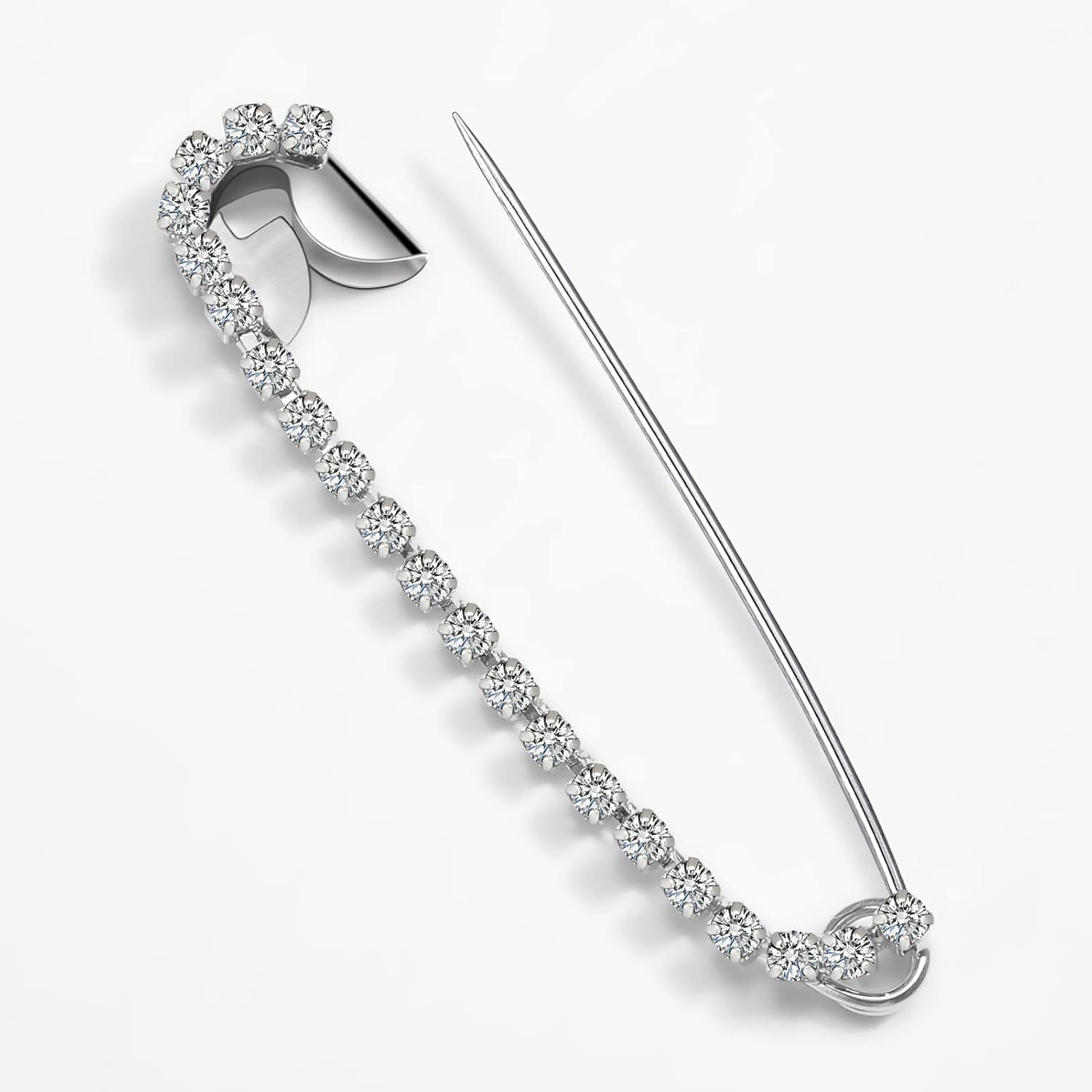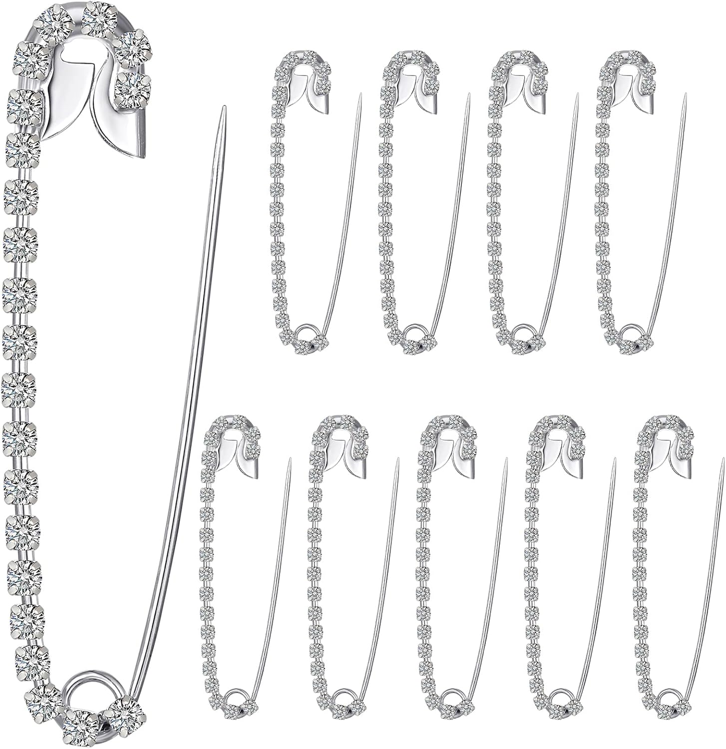 Housweety 10 Silver Tone Rhinestone Safety Pins Brooches 5.8x1.2cm