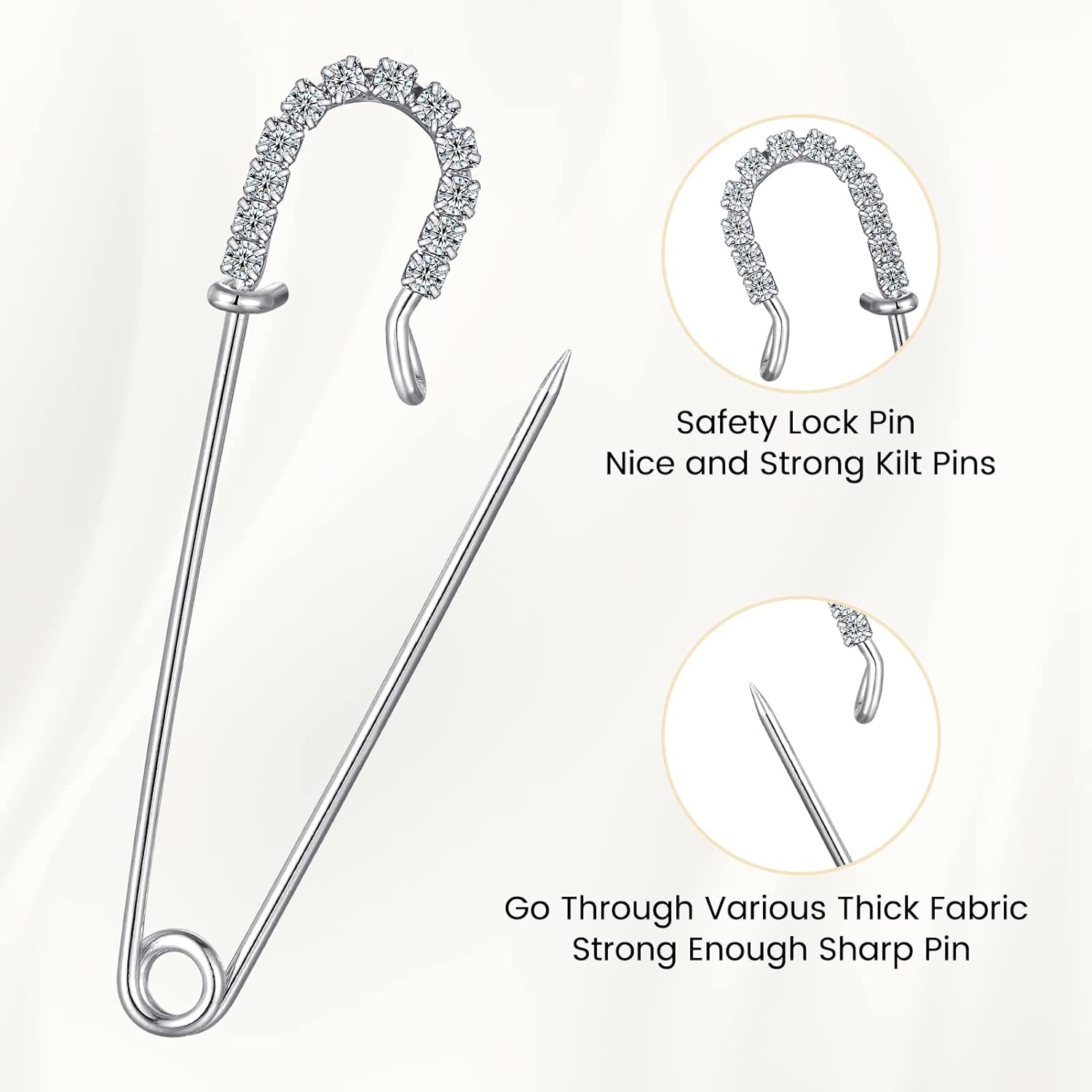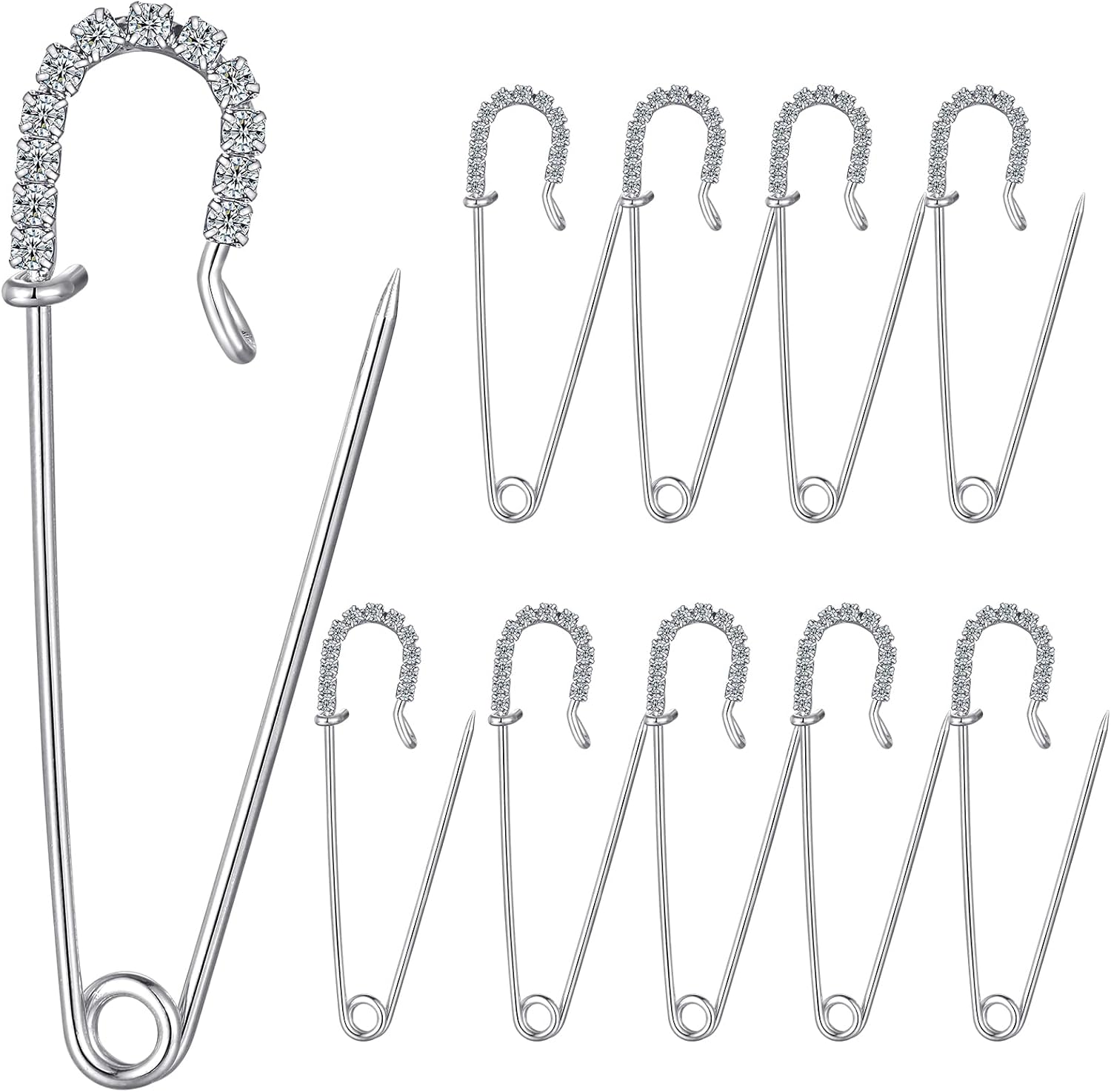 Housweety 10 Silver Tone Rhinestone Safety Pins Brooches 6.5x1.8cm