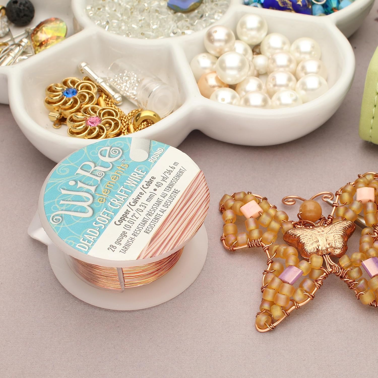 - COILS OF WIRE: This 28-gauge wire comes in a vibrant natural copper color, encased in a tarnish resistant coating, and measures 0.32mm (0.013 inches) in diameter. There is 40 yards of wire on this spool and comes with a clip to protect your wire when it is not in use.