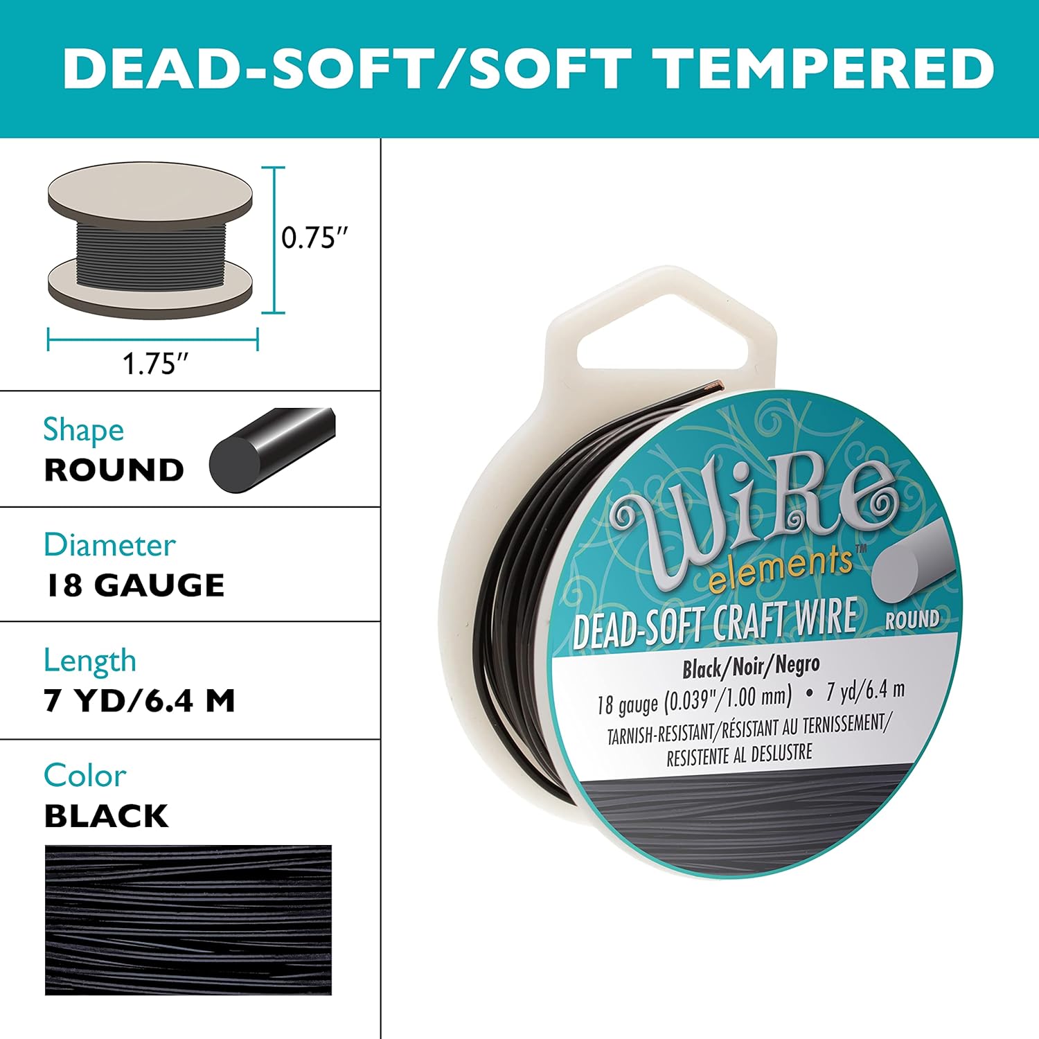The Beadsmith Wire Elements Craft Wire – Tarnish Resistant, Soft Temper, Round, Black Color – 1mm, 18 Gauge, 7 Yard Spool – Jewelry Making, Wire Wrapping, Floral, & Other DIY Crafts