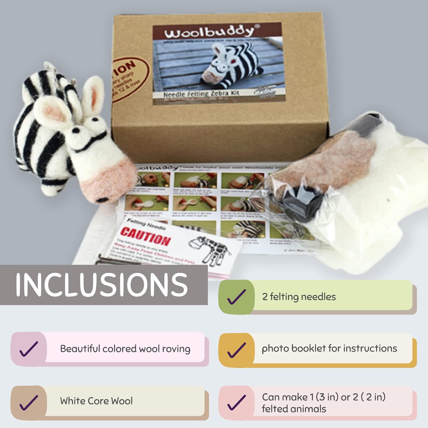 Woolbuddy Needle Felting Kit for Beginners & Adults – Zebra DIY Felt Animal Starter Kit with Natural Wool Roving, Felting Needles & Step-by-Step Instructions