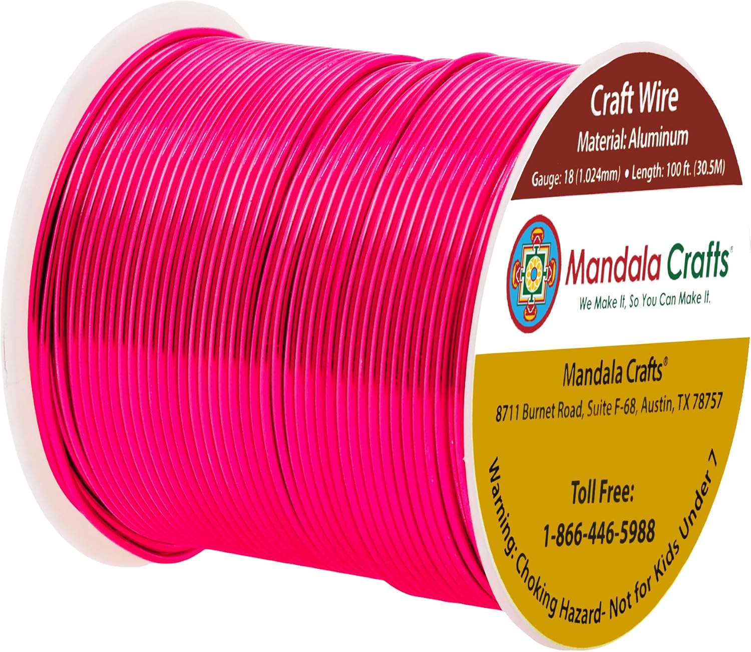 Mandala Crafts 18 Gauge Anodized Aluminum Craft Wire for Jewelry Making - 100 FT Colored Flexible Hot Pink Wire - Bendable for Bonsai Armature Crafting Sculpting