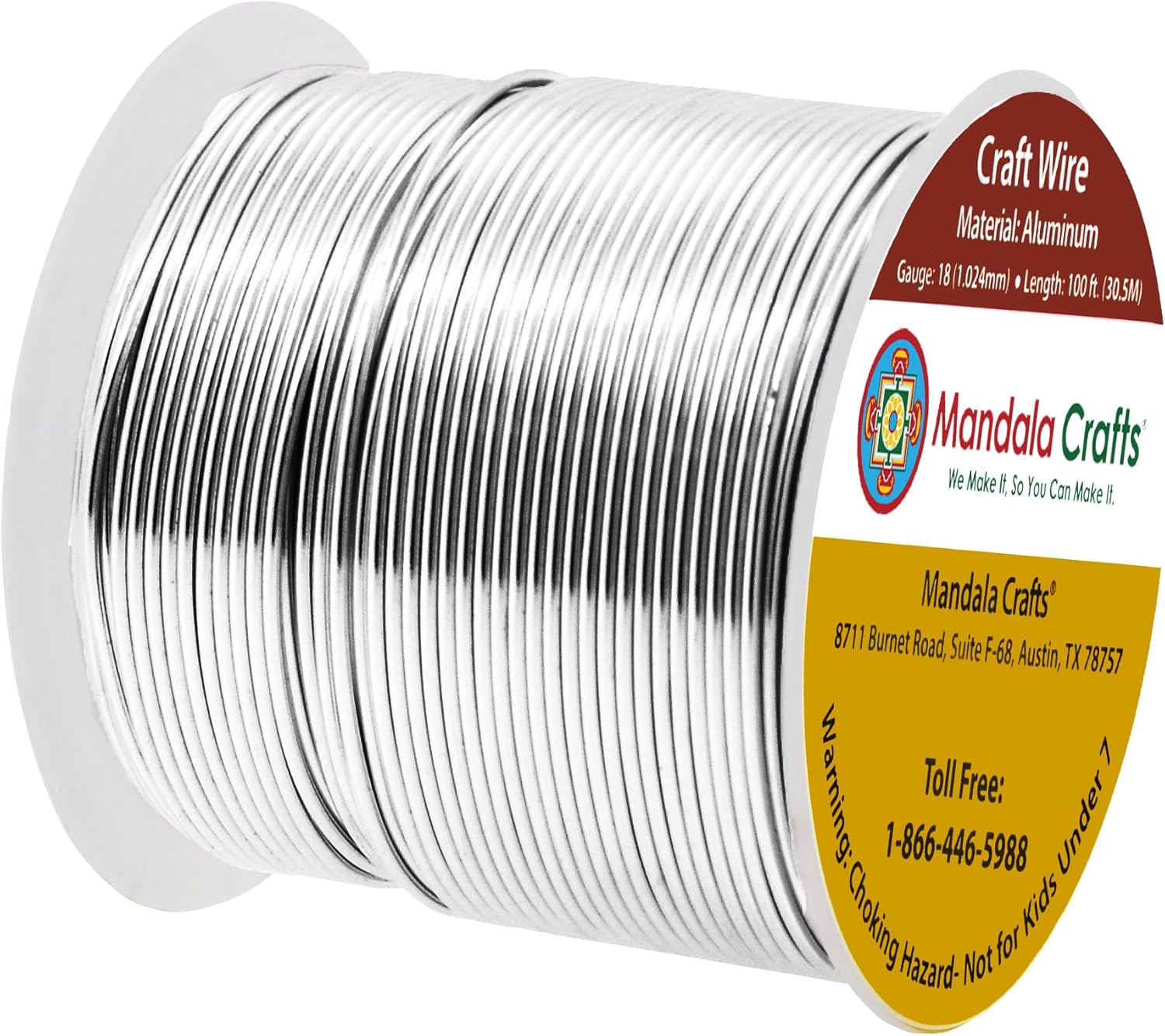 Mandala Crafts 18 Gauge Anodized Aluminum Craft Wire for Jewelry Making - 100 FT Colored Flexible Silver Tone Wire - Bendable for Bonsai Armature Crafting Sculpting