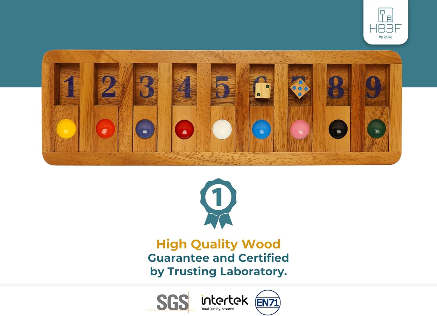 - SHUT THE BOX GAME WOODEN BRAIN TEASERS - Table games wooden boxes of shut the box wooden game made from 100% natural wood that has been used, and every piece of the set is handcrafted with great precision to ensure an easy and correct fit. The wood is hypoallergenic and chemical free with no discernible odor.