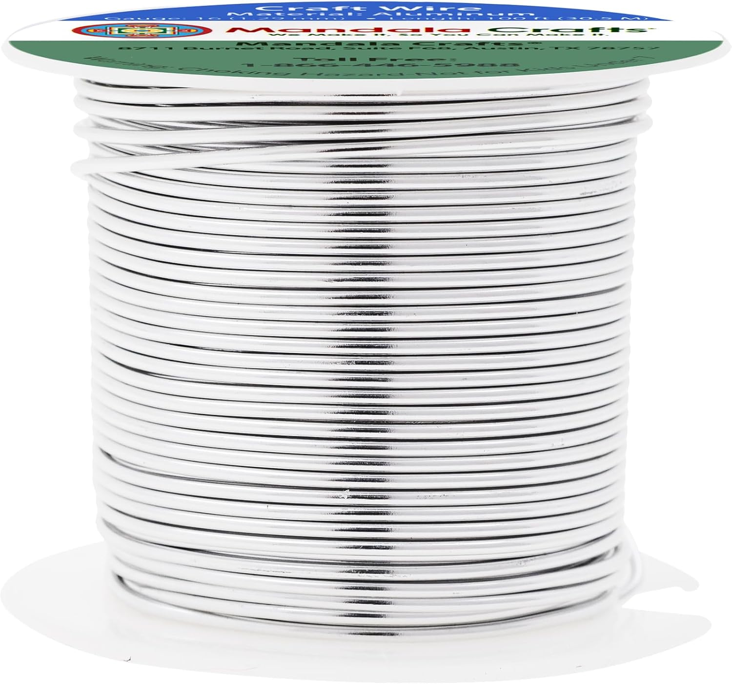 Mandala Crafts 16 Gauge Anodized Aluminum Craft Wire for Jewelry Making - 100 FT Colored Flexible Silver Tone Wire - Bendable for Bonsai Armature Crafting Sculpting