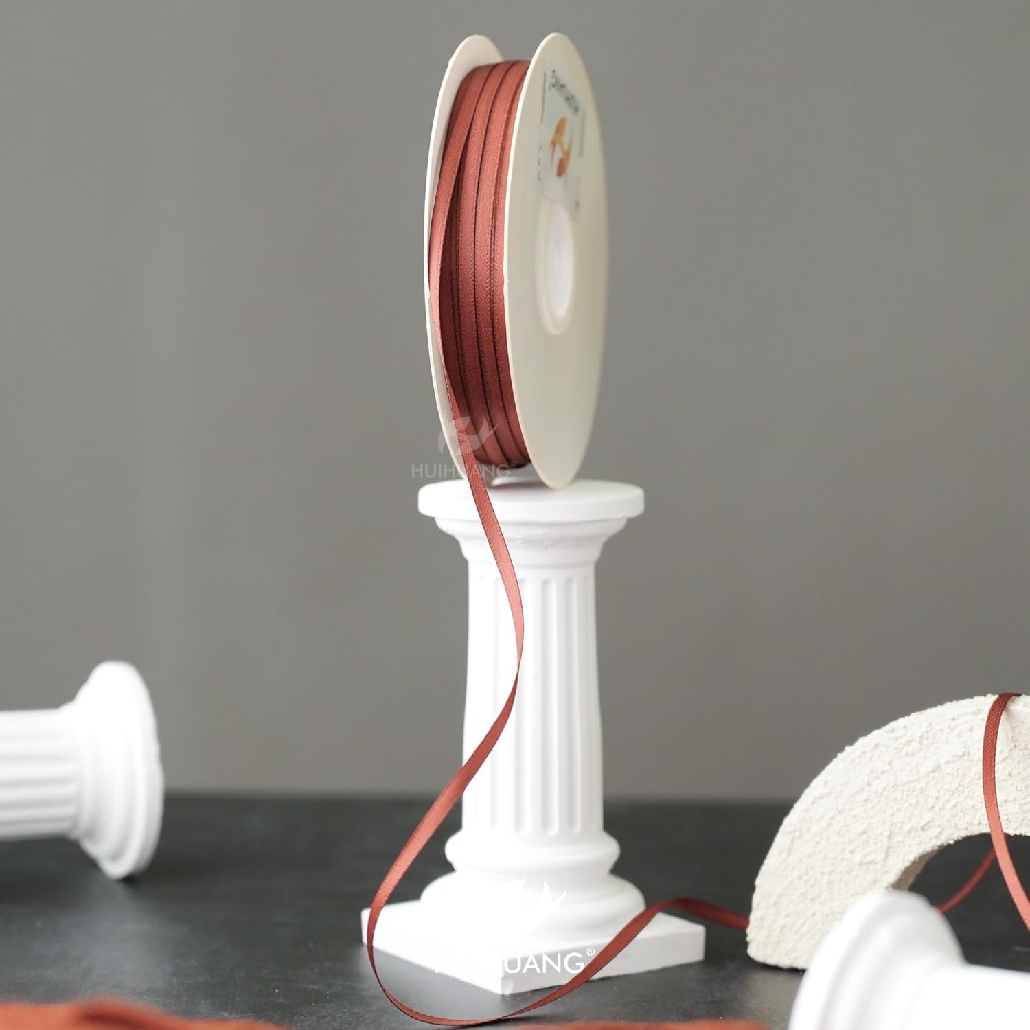 HUIHUANG Solid Color Satin Ribbon 1/8 inch x 100 Yards Roll Double Face Satin Ribbon for Crafts (Rust)