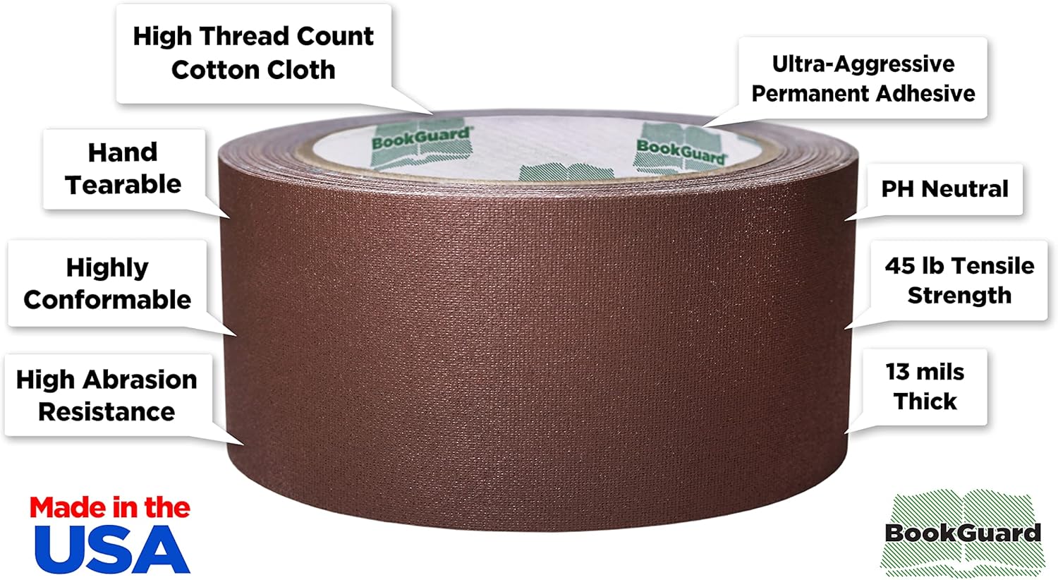 BookGuard 2 Inch Premium Bookbinding Repair Cloth Tape, 15 Yard Roll, Brown