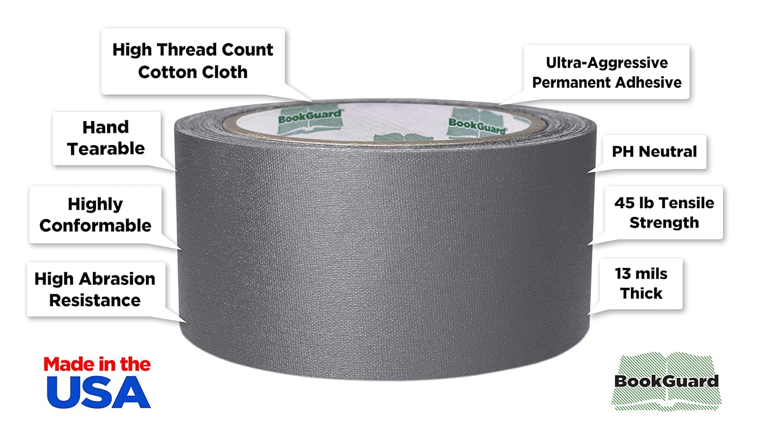 BookGuard 2 inch Premium Bookbinding Repair Cloth Tape, 15 Yard Roll, Gray