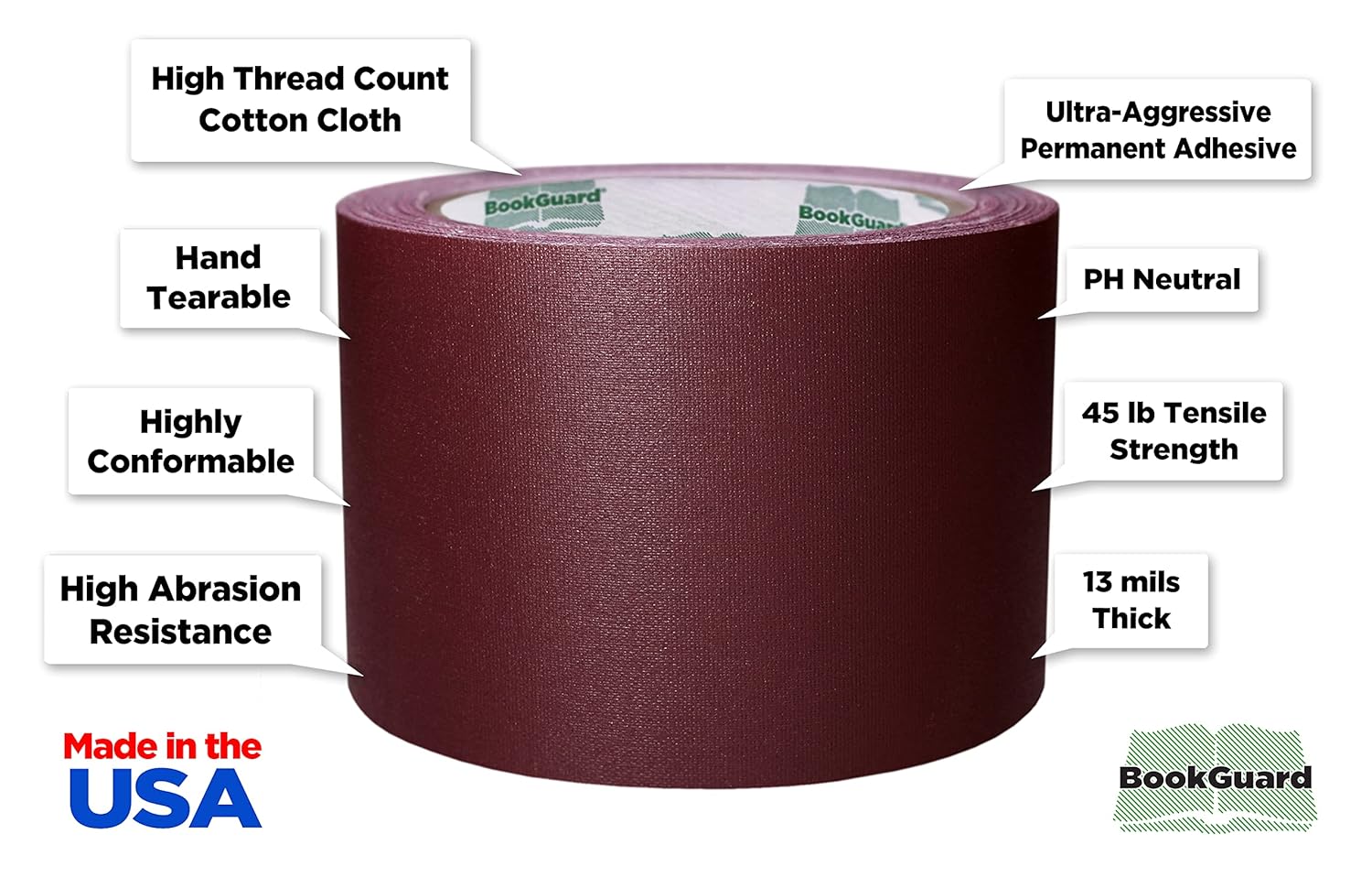 BookGuard 3 inch Premium Bookbinding Repair Cloth Tape, 15 Yard Roll, Burgundy